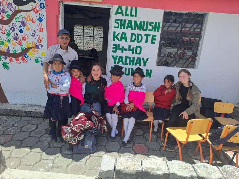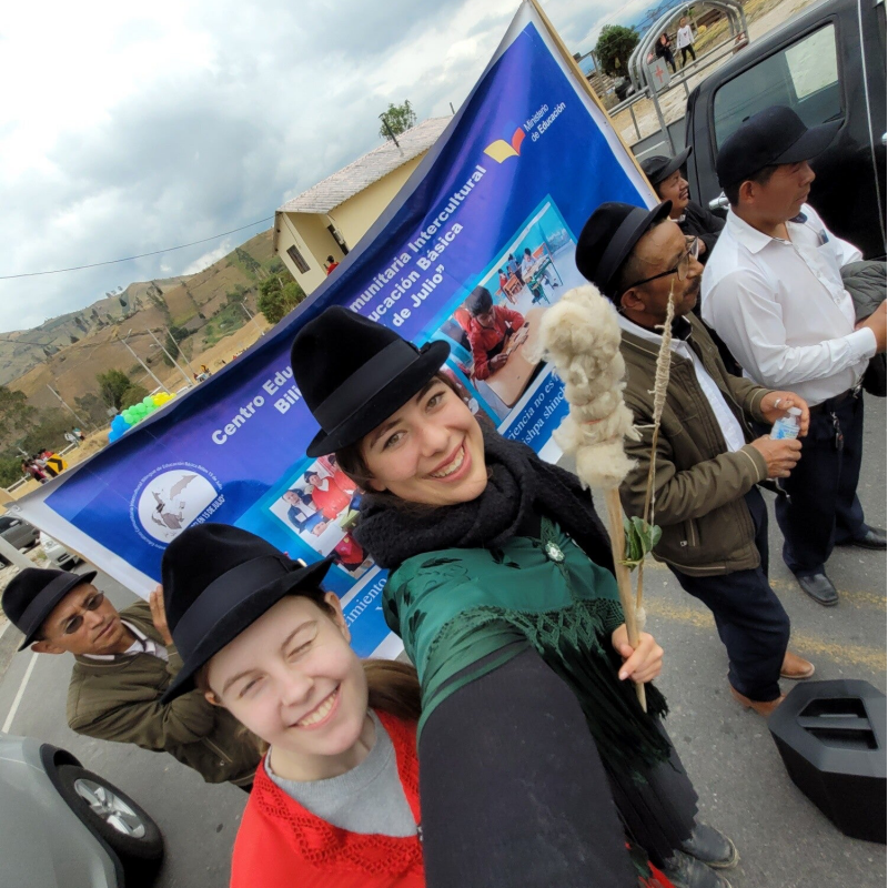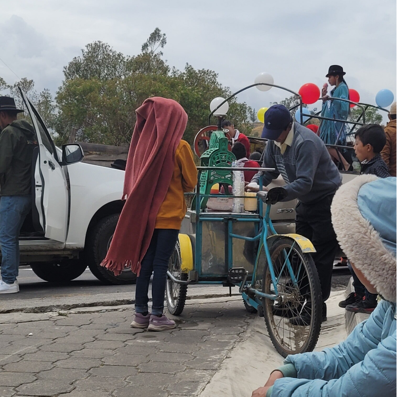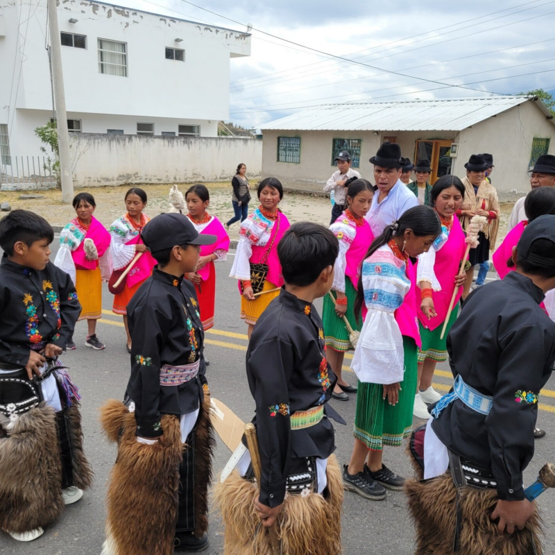 Manchmal gibt es auch besondere Tage, wie zum Beispiel letztes Wochenende. Da haben wir die Schüler der Schulen, in denen wir arbeiten, beim Tanz-Umzug in Chugchilán begleitet. Dafür haben die älteren Klassen fleißig geübt. So hübsch in der traditionellen Kleidung, quetschte sich die Schar Kinder aufgeregt auf die Ladeflächen der Lehrer-Pickups und in aller Frühe kurvten wir uns hoch nach Chugchilán. Zu fröhlicher Musik wurde durch die Straßen getanzt. Spontan entschieden wir uns dazu, eine Nacht in dem Dorf zu übernachten. Dies war definitiv eine gute Entscheidung: Das Wochenende bescherte uns viele nette Bekanntschaften, gutes Essen, ein warmes Bett und Spaß auf der Fiesta abends.
